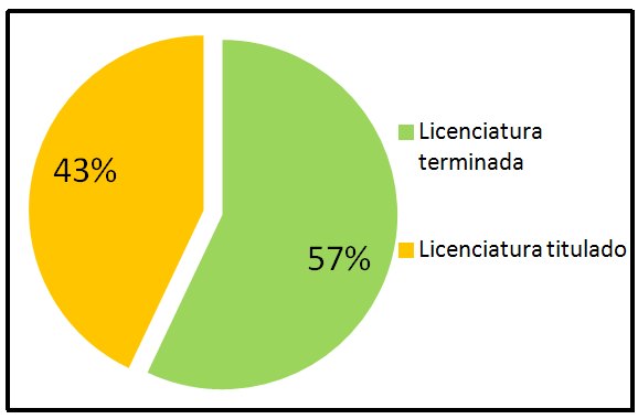 Tomando en cuenta un universo de 221 profesores (10 de los 231 encuestados no contestaron este indicador), en el 2013 contaba con licenciatura 71%, y 43% de esta cifra estaba titulado.
