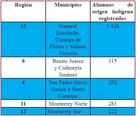 De acuerdo con lo citado en el libro La educación intercultural en Nuevo León (Vidales Delgado, Alemán Martínez y Reyna Martínez, 2007), fue una escuela en el municipio de Monterrey, durante el ciclo escolar 1997-1998, la que solicitó el apoyo de la SENL. En su petitoria advertían sobre la presencia de alumnos de origen otomí en sus aulas, que “manifestaban un rezago educativo y dificultades para entender el español debido a diferentes grados de bilingüismo que presentaban” (Vidales et al., 2007: 62).