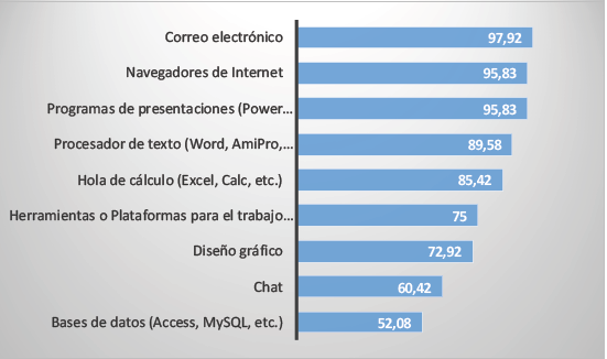 Para conocer la diversidad de uso se midieron nueve herramientas diferentes, cuyos resultados se presentan en el gráfico 1.