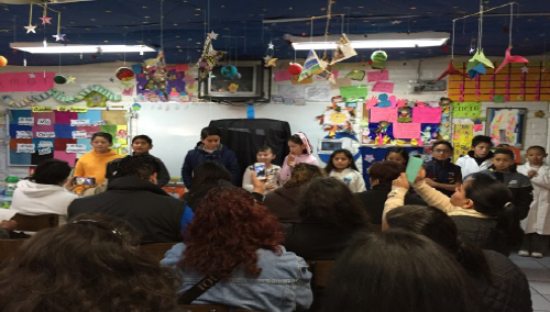 Cuando los padres de familia entran al aula, todos y cada uno de los alumnos conocen su papel. Saben la responsabilidad que tienen y que comparten con los demás. Guardan silencio sin una indicación externa. Saben lo importante que es ese momento pues lo han preparado y trabajado. Habla quien tiene el turno. No se intimidan. Los padres de familia disfrutan ver que sus hijos se expresan con naturalidad y también aprenden de ellos: de los pintores, un poco de su biografía, de dónde son y la ubicación del país en un mapa. Su apoyo también fue importante a lo largo de las dos semanas para que llegara ese momento. Con billetes y monedas que imitan a las reales, compran las pinturas de sus hijos quienes deben de manejar bien el dinero y entregar el cambio correspondiente. Al final, los niños se despiden con un poema grupal.