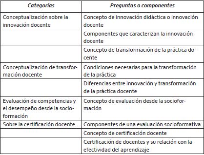 Para este trabajo, la recuperación y análisis documental se realizó mediante la búsqueda y selección de artículos en revistas indexadas, relacionados con los procesos de certificación docente y de innovación de la práctica educativa, y la planificación del proceso de enseñanza-aprendizaje; esto permitió realizar un registro bibliográfico de fuentes primarias. Se seleccionaron prioritariamente artículos de los últimos cuatro años; sin embargo, resultó necesario incluir algunos de mayor antigüedad debido a que no se encontró material de años recientes. Las categorías analíticas establecidas se observan en la Tabla 1.