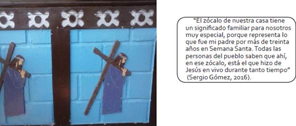 En los zócalos también se pueden apreciar representaciones de la cotidianidad de los habitantes, gustos, preferencias, historias familiares, anécdotas de vida, signos de lugares de gran valor sentimental, cultural o histórico del municipio, proyectos, personajes significativos, oficios, actividades culturales, paisajes, flora y fauna de la región, así como la interculturalidad como parte de la mezcla de las culturas a partir del desarrollo del turismo y de los avisos publicitarios (ver la Imagen 4).