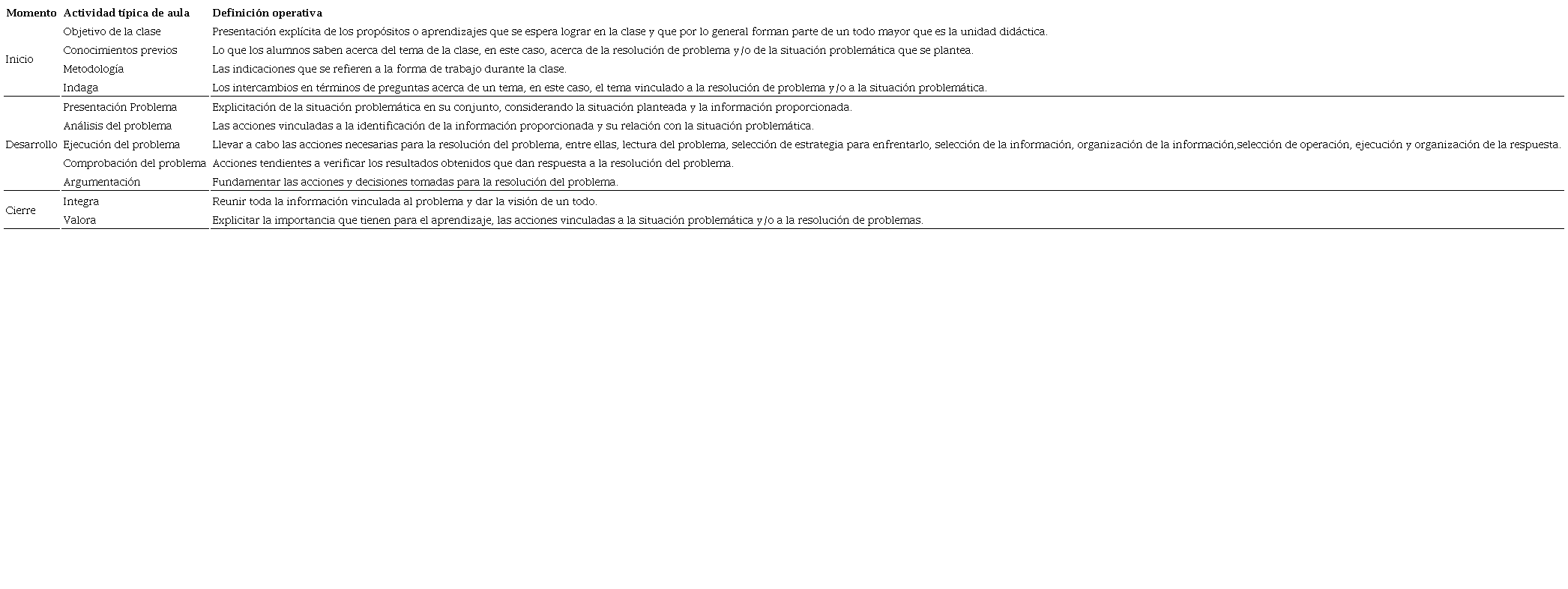 Al analizar los procesos que se evidencian en los momentos de la clase se puede relevar que los momentos de inicio y cierre son a los que se destina menor número de acciones en comparación con el desarrollo de la clase, momento en el que ocurren la mayoría de las situaciones. Si bien esto es de esperar por la variable tiempo, hay acciones que no tienen fuerza en los momentos en los que se supone se deben abordar en términos de orientaciones y apoyos a la tarea que se va a desarrollar, el inicio debe tener una orientación destinada a ello. Si bien al inicio de la clase se activa conocimiento previo y se indaga acerca de lo que los alumnos saben del tema vinculado al problema, no se explicita el objetivo de la clase ni la metodología con que se trabajará.