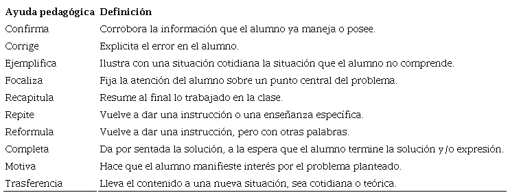 Las ayudas más frecuentes son de bajo impacto en el aprendizaje y en la mediación, se enfocan a aclarar dudas o resolver inquietudes, más que a utilizar estrategias concretas que beneficien el aprendizaje de los estudiantes. Las interacciones entre profesor y alumno no tienden a la retroalimentación, se enfocan en la ejecución de la tarea y no considera un proceso de monitoreo de las acciones ejecutadas en el desarrollo.