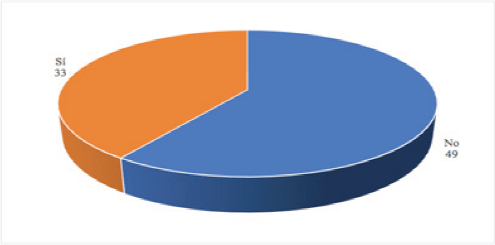 Del total de la muestra, 33 personas (40%) refirieron tener hijos en edad escolar que toman clases virtuales (vía internet o televisión) (Figura 9). De los cuales, 25 son mujeres y 8 varones; además, 26 de ellas mencionaron que tuvieron que adquirir un equipo para ello y 28 tuvieron que contratar algún servicio de internet.