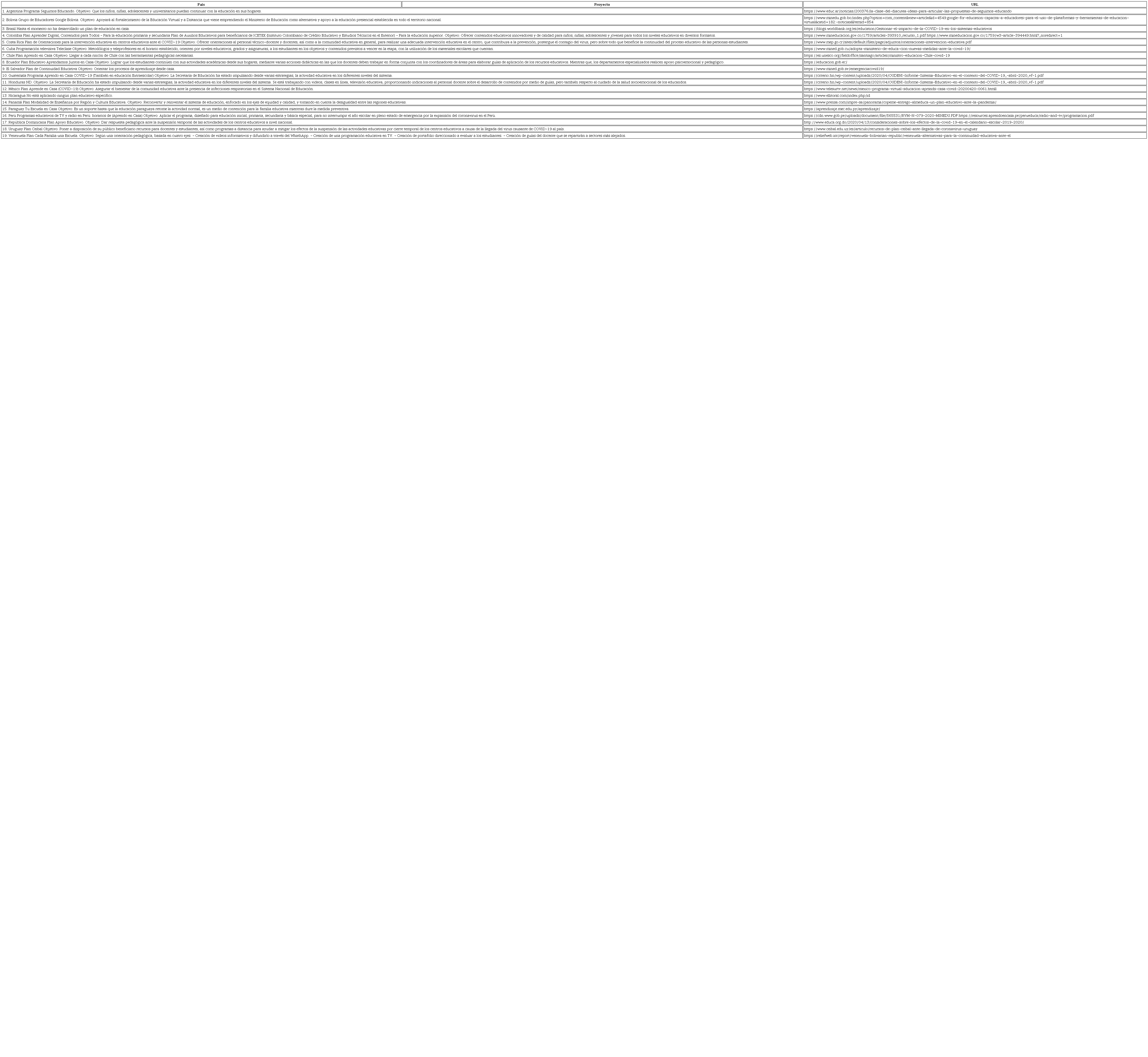 Sin embargo, se requiere de la institución y el que prueben varias tecnologías y después elijan aquella que contribuya a comunicarse con alumnos en casa. Para dar una respuesta a procesos enlazados se recurre al inventario de proyectos de apoyo a la educación virtual, dirigido por Delgado (2020), y disponible durante la pandemia en ALyC, entre los cuales destacan elementos pedagógicos contenidos en el proyecto y la cantidad de alumnos que se supone deben hacer uso de cada uno de dichos proyectos. En el Cuadro 8 se enuncian los proyectos por país, su objetivo y la liga para su localización en Internet.
