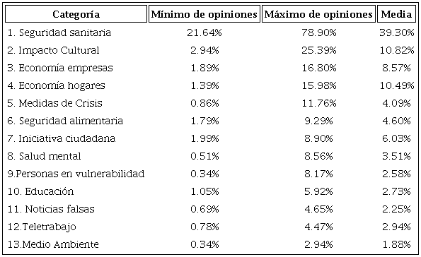 Fase 3. Distribución de opiniones predominantes en twitter: