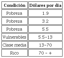 El grado de desigualdad tiene que ver con la distribución del ingreso por día a nivel de país y regional (ver Tabla 5).