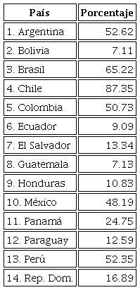 La desigualdad está asociada con el acceso a Internet. A continuación se presenta el porcentaje de población de países de ALyC que usan Internet (Tabla 6).