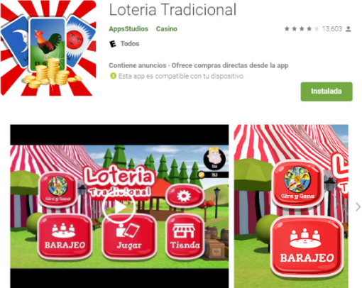 […] el tradicional juego de lotería mexicana. Con una gama de 10 tablas a elegir y las 54 barajas de los diferentes personajes. Mientras se lanzan las cartas tendrás frijoles para ir marcando las que están en tus tablas. Además ofrece la posibilidad de jugar en línea con otros jugadores del mundo, por bluetooth con tu amigo favorito, sin conexión con jugadores máquina.