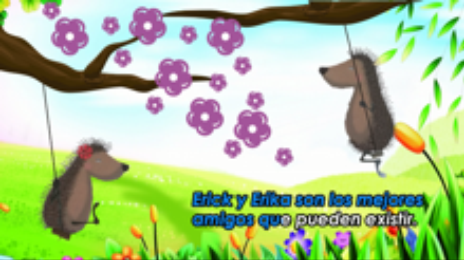 Brenda: [Interrumpe señalando la pantalla con su mano derecha] Maestra, maestra, veo una, aquí dice Abrizos, abrazos de erizos,