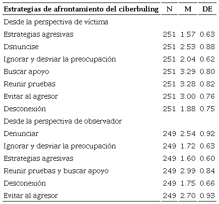 Key words: Cyberbullying, coping strategies, victims, observers.