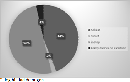 El uso de las herramientas tecnológicas y digitales para las clases virtuales son necesarias ya que facilitan y acercan la universidad al hogar de cada uno de los estudiantes. Basantes (2017) menciona que el uso de computadoras o celulares tiene una gran funcionalidad en los ambientes virtuales de aprendizaje, y Sabido (2014) refiere que el uso particular de los celulares puede generar en los estudiantes de nivel superior una inquietud constante para utilizarlo para fines distintos, como la revisión de mensajes de texto, llamadas y redes sociales cuando están en las clases sincrónicas, que constituyen un fuerte distractor durante sus sesiones. En esta investigación se estima que 44% de los estudiantes disponen de celulares para recibir sus clases, teniendo con esto el riesgo de disminución del rendimiento escolar, y más de 50% sí cuentan con una computadora, que se considera la herramienta ideal para las actividades virtuales.