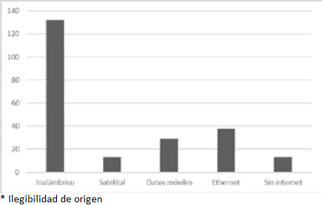 El servicio de conexión en línea que disponen para el trabajo virtual es el siguiente: 58% refiere tener internet inalámbrico; 5% internet satelital; 12% datos móviles, 16% con conexión de ethernet; y 5% no cuenta con ningún tipo de servicio de internet. El suministro de este servicio lo reciben de las siguientes empresas: 16% Megacable; 39% Infinitum de Telmex: 21% Telcel; 1% AT&T; y 21% otra empresa (Figura 2).