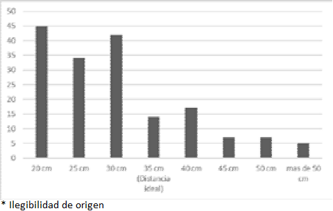 La distancia que se debe guardar para cada dispositivo tecnológico que se utilizado para las clases virtuales, como celulares y computadoras portátiles o de escritorio, debe ser dispuesto de acuerdo con lineamientos de la ergonomía digital para no dañar la vista y mejorar la recepción de los gráficos de cada pantalla o monitor. De acuerdo con Guilleumas (2010), lo ideal es que en el caso de dispositivos móviles y computadoras de escritorio se coloquen a 35 y 60 centímetros respectivamente, para mejorar la interacción con estos medios tecnológicos. Estos datos son desconocidos por una amplia población de estudiantes universitarios y pasan desapercibidos, exponiendo con esto que hace falta capacitación y conscientización para el uso correcto de los dispositivos tecnológicos.