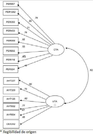 Para la conformación de la escala total de actitudes hacia la tutoría se siguieron dos procesos: 1. El análisis factorial exploratorio (AFE) de cada escala para la obtención de los reactivos válidos y del coeficiente de confiabilidad Alpha de Cronbach de cada escala por separado y, posteriormente, el AFE del total de reactivos que obtuvieron los valores aceptables en el primer paso, para conformar la escala total de actitudes hacia la tutoría; 2. El análisis factorial exploratorio desde el método de componentes principales basado en autovalor, para determinar el comportamiento de las dimensiones en el interior de la escala total de actitudes hacia la tutoría y el análisis factorial confirmatorio de la escala total de actitudes hacia la tutoría para confirmar las dimensiones de la misma, teniendo como base del modelo lo que indicó inicialmente el AFE. A partir de esos análisis finales, la escala total de actitudes hacia la tutoría reveló dos factores: 1. Confianza en la tutoría afectiva y 2. Utilidad en la tutoría académica.