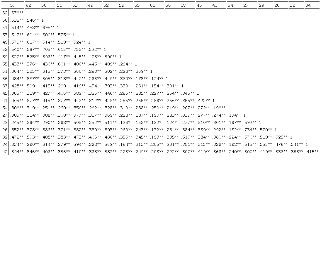 La correlación entre las puntuaciones de la escala de Tutoría académico-afectiva. Todas las relaciones entre los diferentes reactivos de la escala total mantuvieron niveles significativos de correlación, por lo que se puede confirmar la asociación interna de los reactivos (véase la Tabla 3).