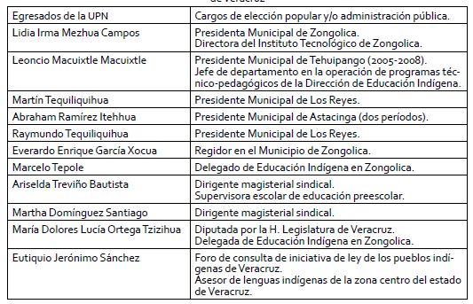 Los egresados de esta licenciatura entre 1995 y 2019 han sido 905, y todos laboran y/o viven en localidades nahuas en la región de las Altas Montañas. Un número significativo de estos egresados ha trascendido su labor docente en los municipios, localidades o comunidades, ya que varios de ellos han sido nombrados funcionarios de la Secretaría de Educación Pública o son representantes sindicales, otros más han alcanzado el reconocimiento social al ocupar cargos de elección popular.