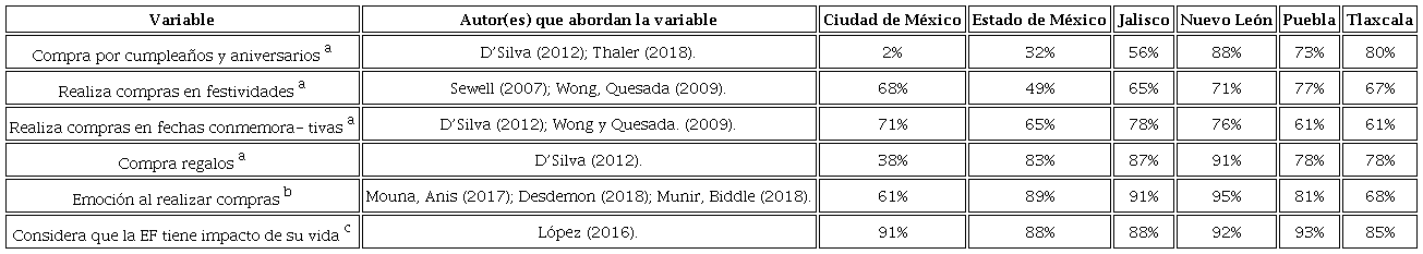 En este sentido, Tlaxcala registró el nivel más bajo en educación financiera, con una ponderación de 10.83, lo que implica un menor comportamiento financiero en comparación con el resto de los estudiantes de otras entidades federativas. Por otra parte, Nuevo León es la entidad con mayor puntaje, lo cual -de acuerdo con la teoría de las finanzas conductuales- tiene relación en que haya sido el segundo mejor calificado en los factores psicológicos, comprobando que su comportamiento varía acorde a las tendencias o a sus determinantes contextuales y psicológicas (Fandiño, 2011; Guzmán et al., 2019a).
