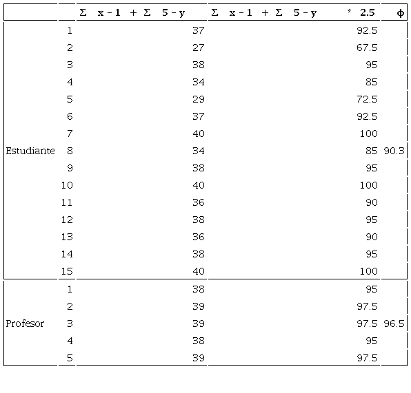 A cada ítem impar se resta uno a la cantidad determinada por los encuestados.