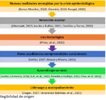 A continuación, se presentan algunos teóricos que sugieren posibles acciones bajo el enfoque del aprendizaje-servicio ofrecido por pares académicos, como estrategia de desarrollo de liderazgo social que atiende necesidades educativas reales en un contexto de pandemia.