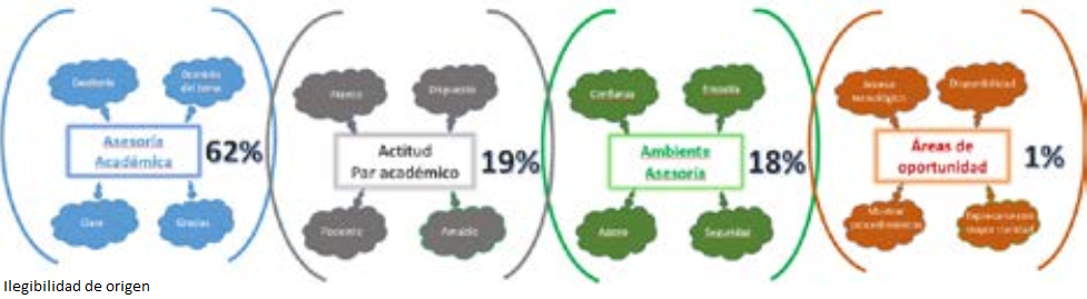 Como áreas de oportunidad, los encuestados indicaron la necesidad de mejorar el acceso tecnológico, mostrar los pasos o procedimientos del MAE para entender mejor la explicación, tener mayor disponibilidad y expresarse con mayor claridad. Es importante notar que el uso tecnológico no es suficiente para apoyar un proceso de asesoría; se debe ir más allá y promover el diálogo, la cercanía y la construcción del aprendizaje, como lo señalan Rodríguez y Sosa (2018).