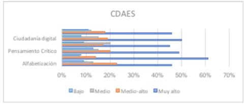 El CDAES permitió verificar la competencia digital desarrollada por los asesores MAE. La Figura 6 muestra estos resultados.