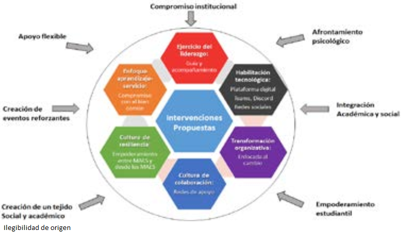 Uno de los objetivos específicos del estudio consistió en proponer intervenciones de apoyo académico bajo los principios de aprendizaje-servicio con base en lo aprendido. En la Figura 7 se sugieren algunas intervenciones, considerando los resultados obtenidos durante su ejecución y con el marco teórico revisado.