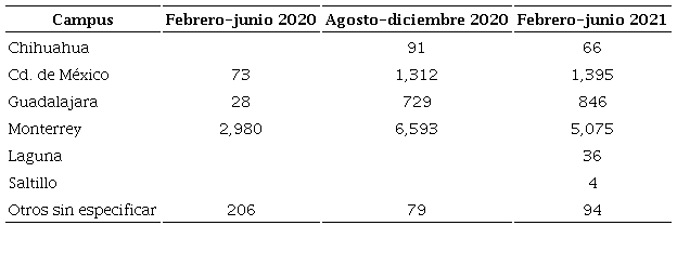 Parece ser que, bajo la modalidad virtual, las asesorías académicas entre pares abrieron nuevos espacios y modalidades de interacción, porque se ofrecieron no solamente en Campus Monterrey, donde originalmente fueron planificadas, sino también en los Campus Guadalajara, Chihuahua, Ciudad de México, Morelia, Laguna y Saltillo, en especial para quienes estudian la carrera de Medicina.