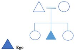 A continuación, tenemos la gráfica de la estructura de familia de la que forma parte este joven. Se trata de una típica familia nuclear, sin integrantes que participen en los circuitos de migración. Juan Carlos tiene dos hermanas, y vive con ellas y sus padres, en la situación particular en la que se ha comentado (confinado en un automóvil que se ubica afuera de la vivienda familiar).