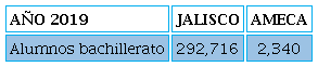 Ahora bien, si relacionamos los datos de población de la Tabla 3 con los datos de alumnos inscritos en educación media superior, tenemos un panorama muy poco halagüeño, tanto por lo que concierne al estado de Jalisco como por lo que toca al municipio de Ameca. Vemos que sólo 45% de la población de 15 a 19 años en Ameca está inscrita en este nivel educativo y en Jalisco esta proporción es de 41%.Estas cifras nos permiten entender, como hemos señalado antes, que la educación media superior sea un asunto de atención prioritaria para las autoridades educativas federales y estatales, y también sugiere que deberían generarse diversas preguntas acerca de los quehaceres de los jóvenes que no se encuentran registrados en estas estadísticas.