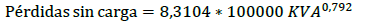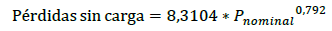 En la sección 5 de esta norma se referencia la ecuación como una ecuación válida para determinar el valor de pérdidas con carga presentes en los transformadores. Se debe tener en cuenta que esta norma solo menciona transformadores hasta de 10 MVA, y los transformadores presentes en ambos sistemas IEEE son de 100 MVA; sin embargo, es una buena aproximación a un valor de pérdidas que podría llegar a tener un transformador. En las simulaciones se ajusta un nivel de 76 KW, como las pérdidas presentes en el cobre de los devanados.