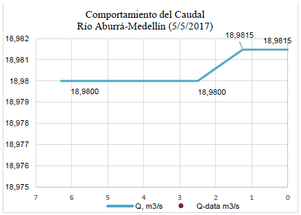 El caudal promedio del río en la estación Ancón Norte fue de 21,23 m3/s, y para la estación de Niquía se tomó el caudal medio de 18,98 m3/s.