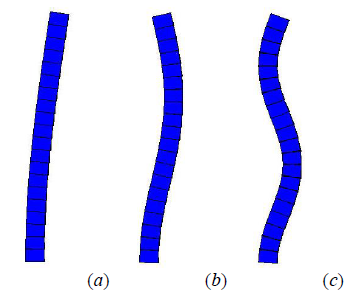 Critical loads and buckling modes can be obtained simultaneously in ANSYS since this program creates a small set of base vectors that define a subspace, that in turn is transformed by successive iterations into a space that contains the eigenmodes of the entire system. Figure 2 shows the modal shapes corresponding to the first three buckling modes with their respective critical loads.