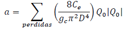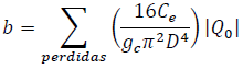 (10)Donde 𝐶𝑒 es el coeficiente de pérdida menor, causado por un cambio en el área de sección transversal del flujo entre la tubería y la fuente. Para los sistemas de red de tuberías grandes, los efectos de entrada y salida pueden ser insignificantes cuando sus pérdidas de presión no son representativas en comparación con las caídas de presión de la tubería.