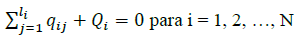 La primera ley de Kirchhoff expresa que la suma algebraica de los flujos en cada nodo debe ser cero, es decir, los flujos de entrada y salida del nodo deben ser iguales, como se muestra en las ecuaciones 17 y 18.
