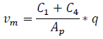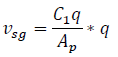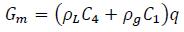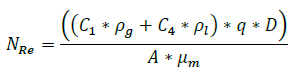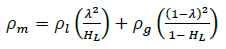 (25)Adicionalmente, la densidad y el flujo másico de la mezcla, así como las velocidades reales y superficiales, también deben expresarse usando estas constantes, a partir de las relaciones evidenciadas en las ecuaciones 26, 27, 28, 29: