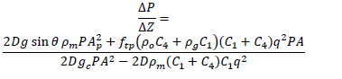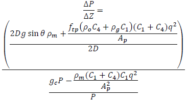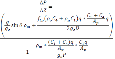 El procedimiento a seguir es similar para cualquier correlación de flujo multifásico( [19, 20, 21, 22, 23, 5, 24, 6, 7, 25]; no obstante, por cuestiones de extensión solo se mostrará el método de Beggs y Brill [7], correspondiente a las ecuaciones 21-36.