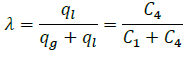 (21)Se definen los caudales de líquido y gas en términos de ciertas constantes arbitrarias, como se muestran en las ecuaciones 22-25: