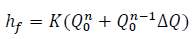 (3)Donde hf representa la caída de presión, y K denota una resistencia constante de la tubería. La caída de presión es usualmente relacionada al flujo en la tubería con la potencia característica, n. Los métodos de Darcy-Weisbach y Hazen-Williams son comúnmente usados para definir los valores de n y K [17]. Asimismo, Q es el “flujo correcto”, y Δ𝑄 es el factor de corrección del flujo.