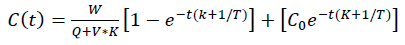 (14)Cuando se trata de sustancias conservativas, es decir, que no se degradan con el tiempo, la velocidad de degradación K es igual a cero [21].