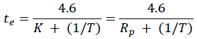 Teniendo en cuenta que el coeficiente de retención de fósforo R es mayor cuando la profundidad es baja, pues el fósforo en estos casos es retenido principalmente por sedimentación, donde a bajas profundidades la sedimentación es mayor; el tiempo te en el cual la concentración del estanque se iguala a la concentración que trae la corriente que lo alimenta; se puede calcular como [21], según se aprecia en la ecuación (15):