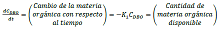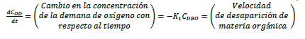 (1)CDBO es la concentración de la demanda biológica de oxígeno, y K1 es la constante cinética de reacción.