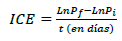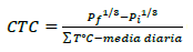 Constante Térmica de Crecimiento (CTC): Calculada a partir del peso por grado al día, según [30] (Ecuación. 4): Índice de Crecimiento Específico (ICE): Peso alcanzado en el periodo de estudio sobre el tiempo de seguimiento ecuación (5), siendo una medida del crecimiento medio