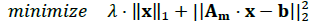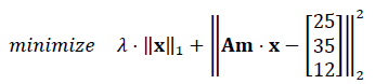The proposed optimization problem is presented in (6). It is often known as ℓ1-regularized least-squares problem and allows the achievement of the two main goals of this work hypothesis: a sparse vector while the square error is minimized [12]. This approach is widely applied in compressive sensing that is an emerging research area with many applications in the last years.