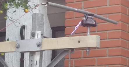 En la Figura 7, se muestran los flameos registrados para las diferentes combinaciones de poste de acero con cruceta de acero y con cruceta de PRFV, con y sin diagonales metálicas. Se observa que el camino de del flameo es similar al flameo en condiciones secas a frecuencia industrial, si se compara la Figura 7(a) y (b), con lo presentado en las Figuras 5 y 6. Adicionalmente, la Figura 7(c) muestra el flameo entre el conductor y el soporte metálico de la cruceta sin diagonales.