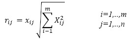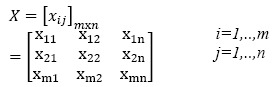 criterio, m es el número de alternativas confrontadas y n es el número de criterios. Un problema común se presentó en la selección de los criterios para el diseño de la matriz en virtud de que la mayoría no presentaba las mismas dimensiones. Para solventar este inconveniente la matriz X fue modificada por una matriz adimensionalizada r como sigue: