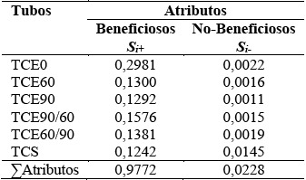 Los atributos beneficiosos y no-beneficiosos, son presentados en las Tabla 9. En este caso el único atributo no beneficioso fue el criterio de carga máxima
