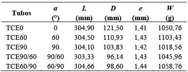 Los extremos de cada tubo fueron maquinados para proporcionar una superficie plana en el contacto con las placas superior e inferior de la máquina de ensayo. Un estudio desarrollado por Aalberg y Haugen [26], determinó que el efecto de las condiciones de borde en probetas de metal expandido sometidas a compresión (con y sin placas en los extremos) genera una respuesta semejante en la carga máxima y en el comportamiento posterior a la precitada carga, excepto que en aquellos especímenes con placas en los extremos los ensayos se podían continuar con mayores desplazamientos. De conformidad con lo anterior, en este estudio no se consideró la soldadura de placas en los extremos de las geometrías analizadas. En la Tabla 1, se presentan el promedio de las dimensiones para los tubos evaluados.