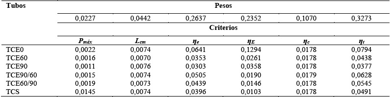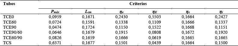 El análisis multi-criterio se fundamentó en el método AHP para la asignación de pesos a los criterios y en el método COPRAS para seleccionar la alternativa ideal entre las opciones disponibles. Los detalles de ambos métodos fueron descritos anteriormente. Del total de parámetros evaluados en la Tabla 4, seis criterios fueron establecidos luego de un exhaustivo análisis: carga máxima